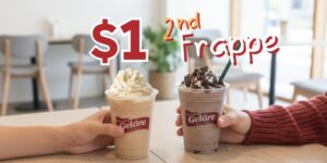 Valid for dine in and takeaway. $1 Frappe is valid with the purchase of a 1st Frappe at regular price. $1 2nd Frappe is applicable for Cookies & Cream Frappe and Mocha Frappe only. Not valid in conjunction with any other promotions or discounts . Images shown are for illustration purposes only. Valid for one redemption in a single transaction. All rights reserved.