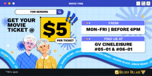 From 2 Jan to 30 Dec 2026, senior citizens from aged 60 years old are entitled to concession rates for 2D and 3D movie tickets, screenings at selected premium hall (GVmax® Dolby Atmos®, Duo Deluxe, Deluxe Plus & Gemini only.
